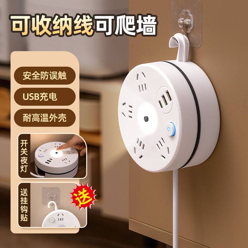 可收纳带线多孔插座 智能插排usb夜灯多功能排插家用办公接线板