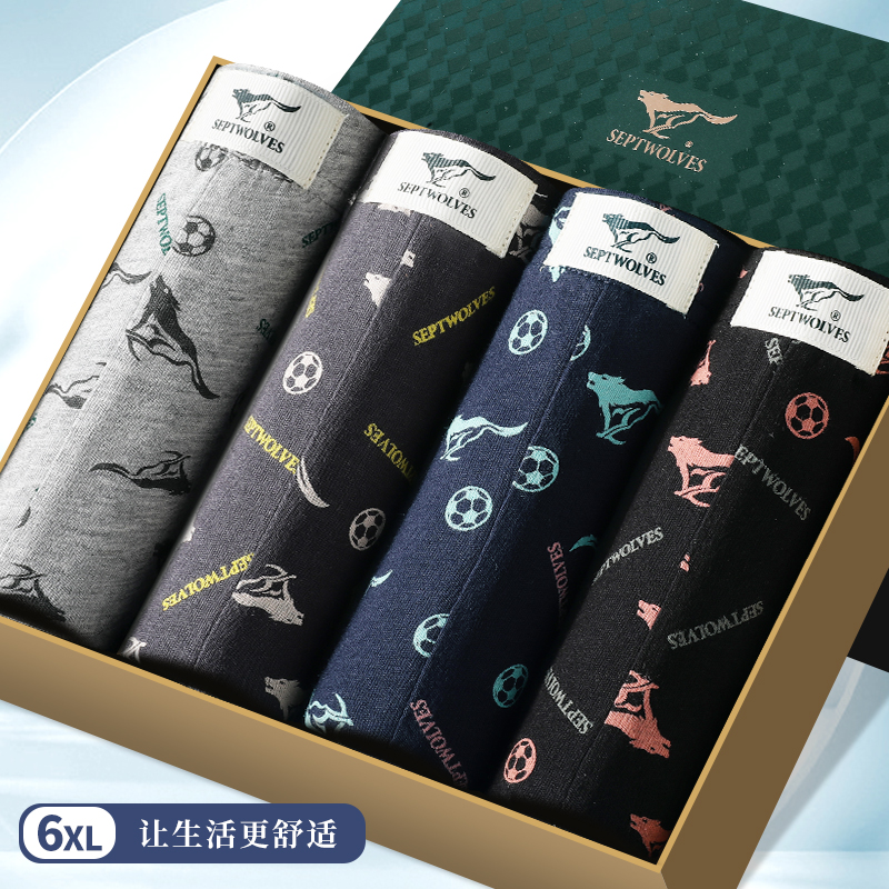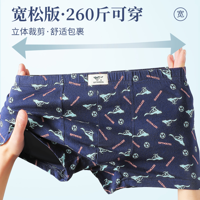 七匹狼中老年人男士内裤男款纯棉四角短裤衩中年爸爸平角宽松全棉