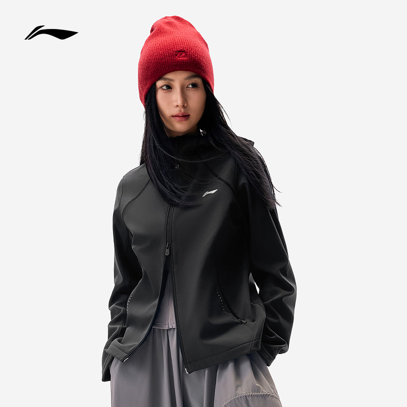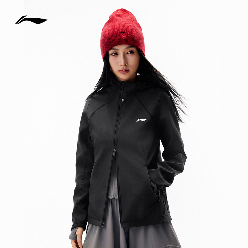 李宁运动服 女款防泼水远红外保暖加绒弹力修身外套运动风衣