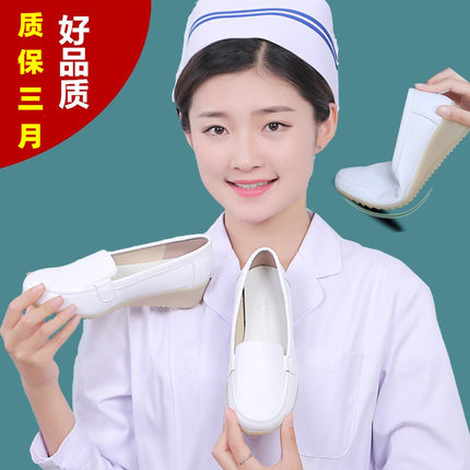中州人护士鞋软底白色女秋冬季坡跟防滑气垫单鞋牛筋底透气不累脚