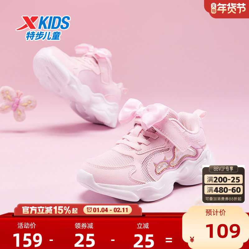 特步童鞋秋冬新款儿童运动鞋女童防滑鞋子幼小童魔术贴萌趣休闲鞋