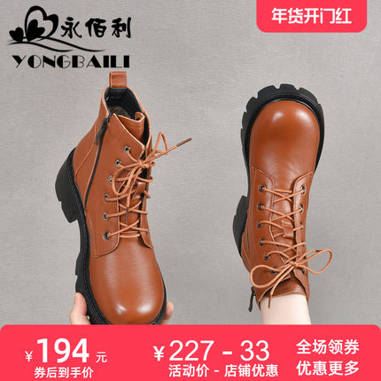 厚底高跟马丁靴女2025秋冬新款真皮圆头粗跟短靴增高松糕女靴女鞋