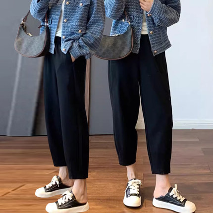 休闲哈伦裤女夏季薄款宽松显瘦老爹萝卜裤高腰八分小个子黑色裤子