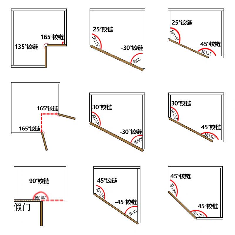DTC东泰特殊铰炼165度135度联动门斜角柜正45度正30度平开 门90度