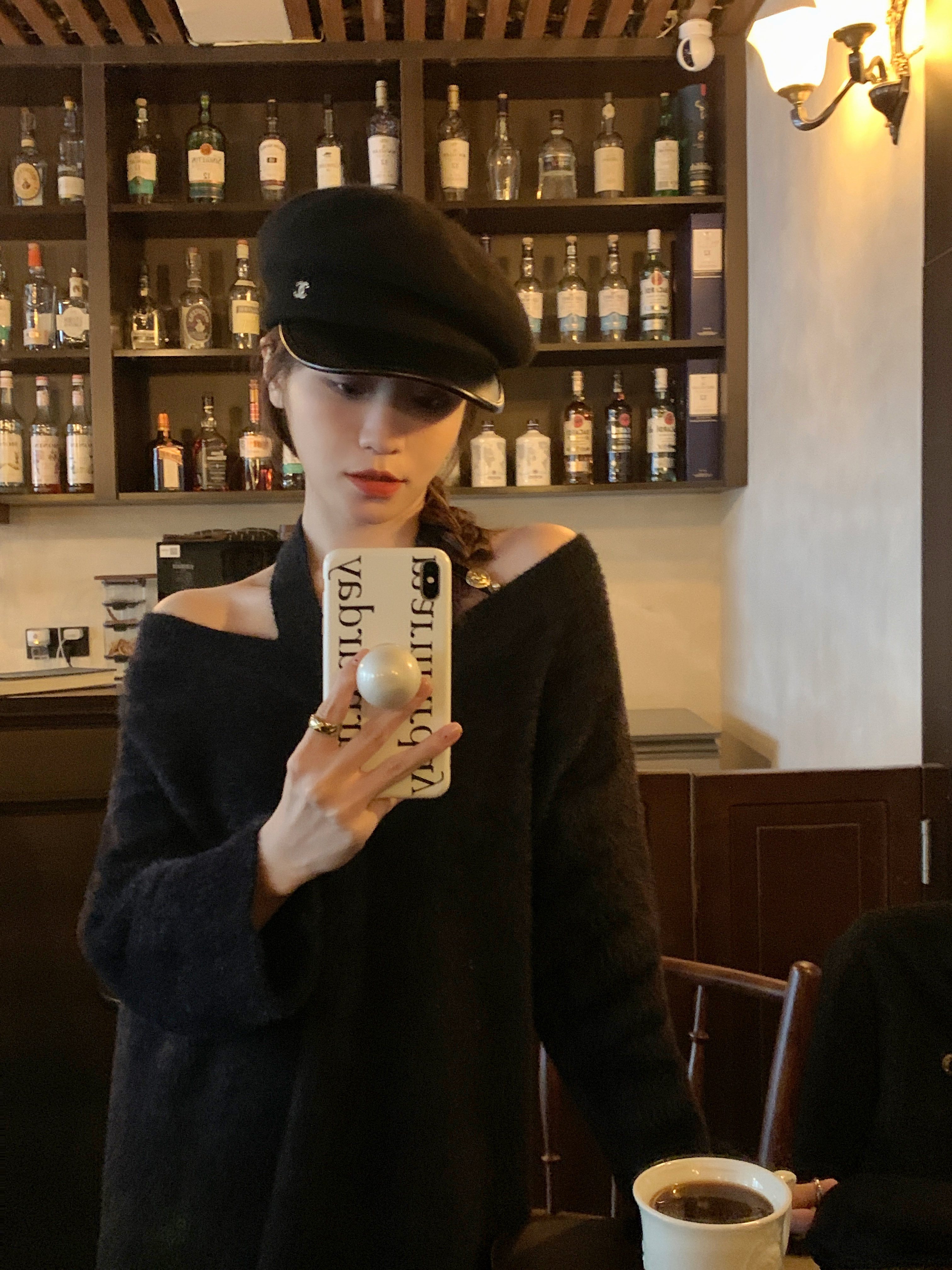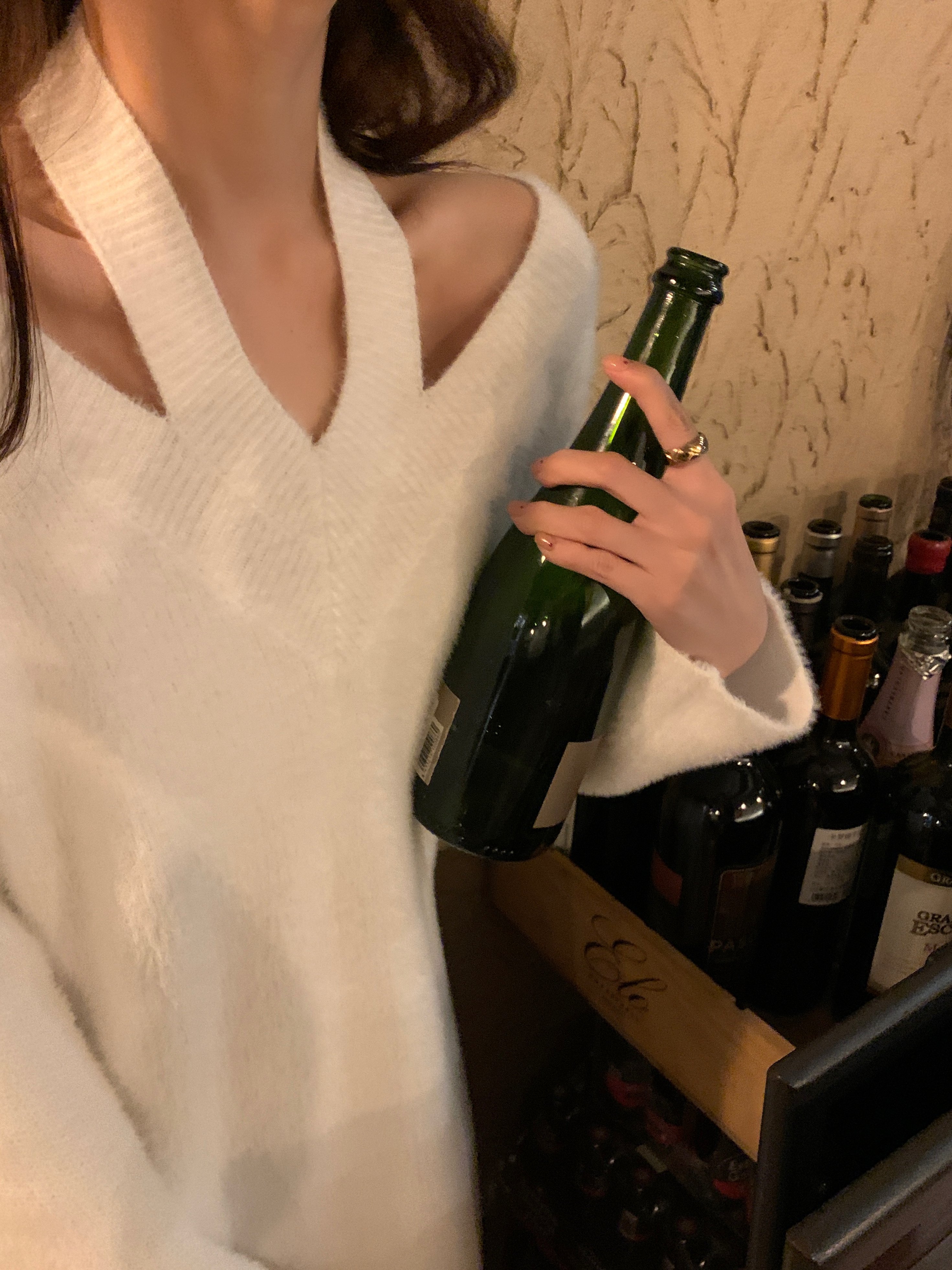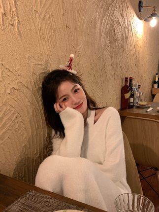FF BLUE节日仙子毛 氛围感毛绒仿貂毛挂脖温柔内搭针织连衣裙长裙
