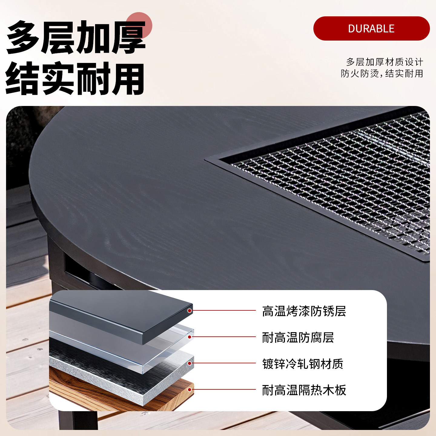 2025新款围炉煮茶烤火炉套装器具全套烧烤桌户外庭院室圆桌烧烤炉