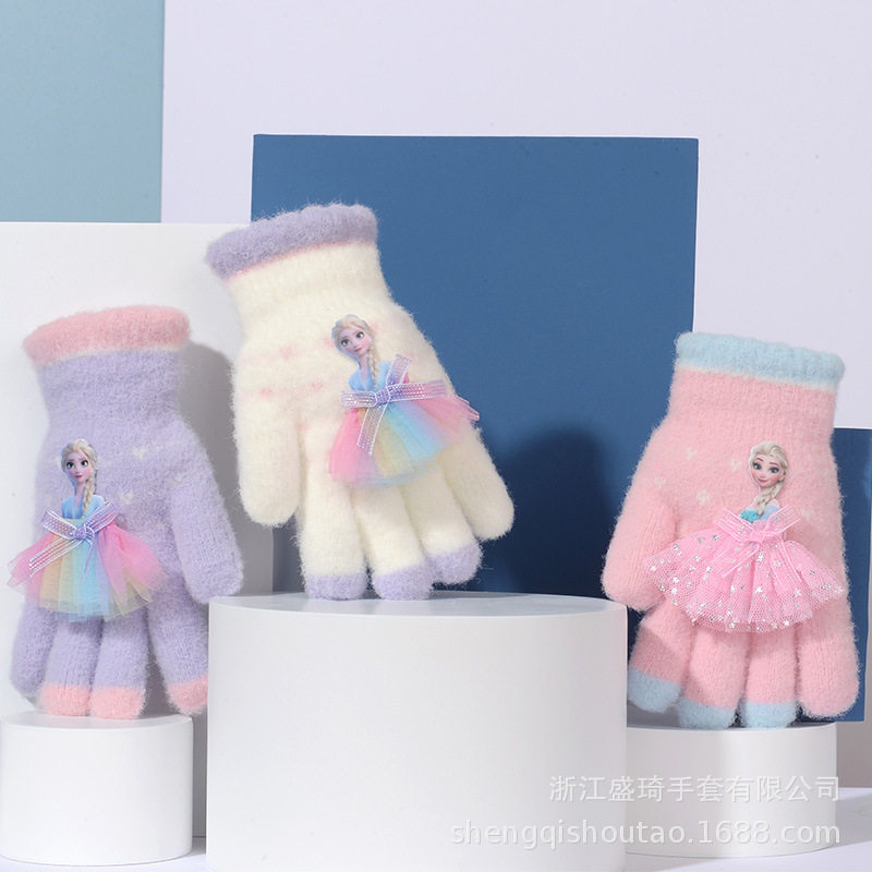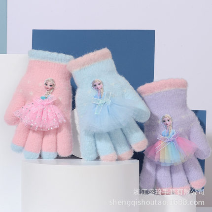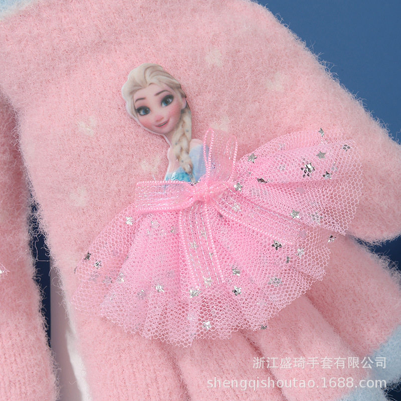 正版艾莎公主儿童五指针织手套可爱中童户外骑车防风学生写字保暖