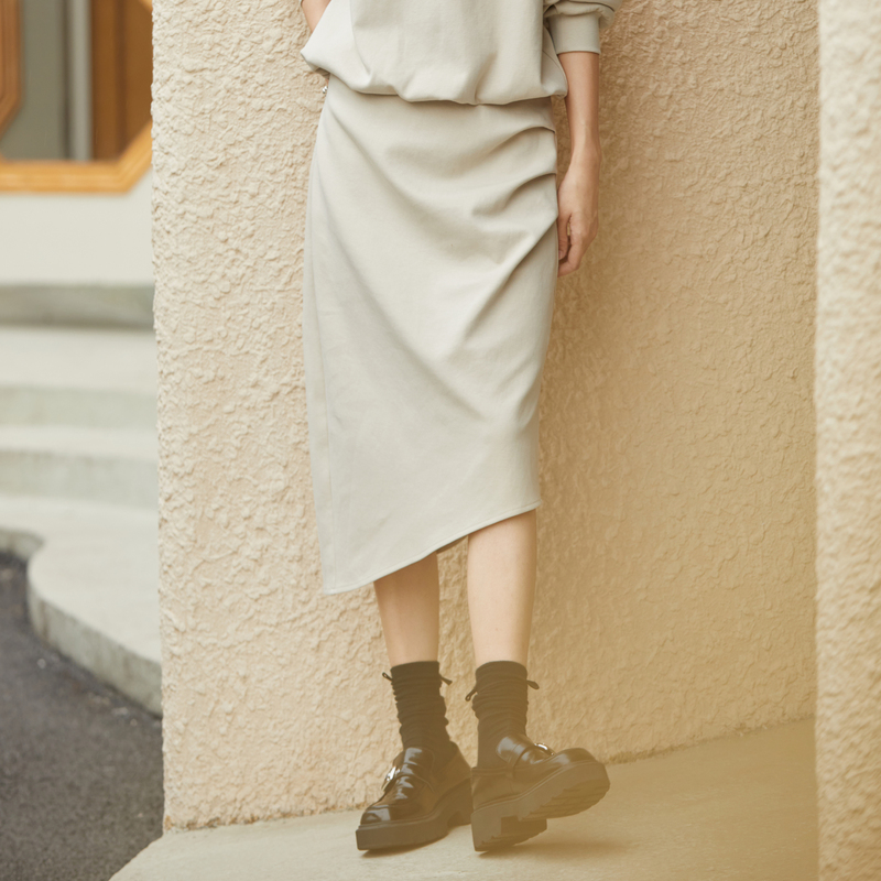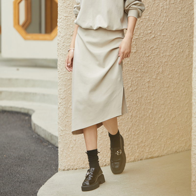 XG雪歌通勤简约不规则半身裙时尚秋季新款开叉设计高腰中长裙女装