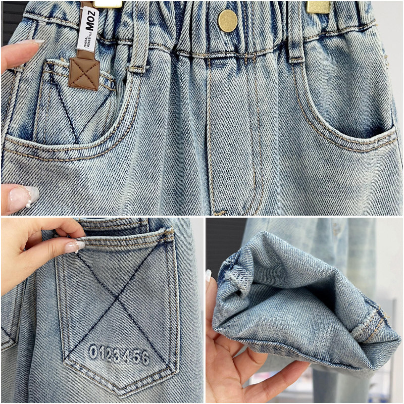品牌童装男童裤子夏季休薄款长裤中大童宽松牛仔裤儿童蓝色老爹裤