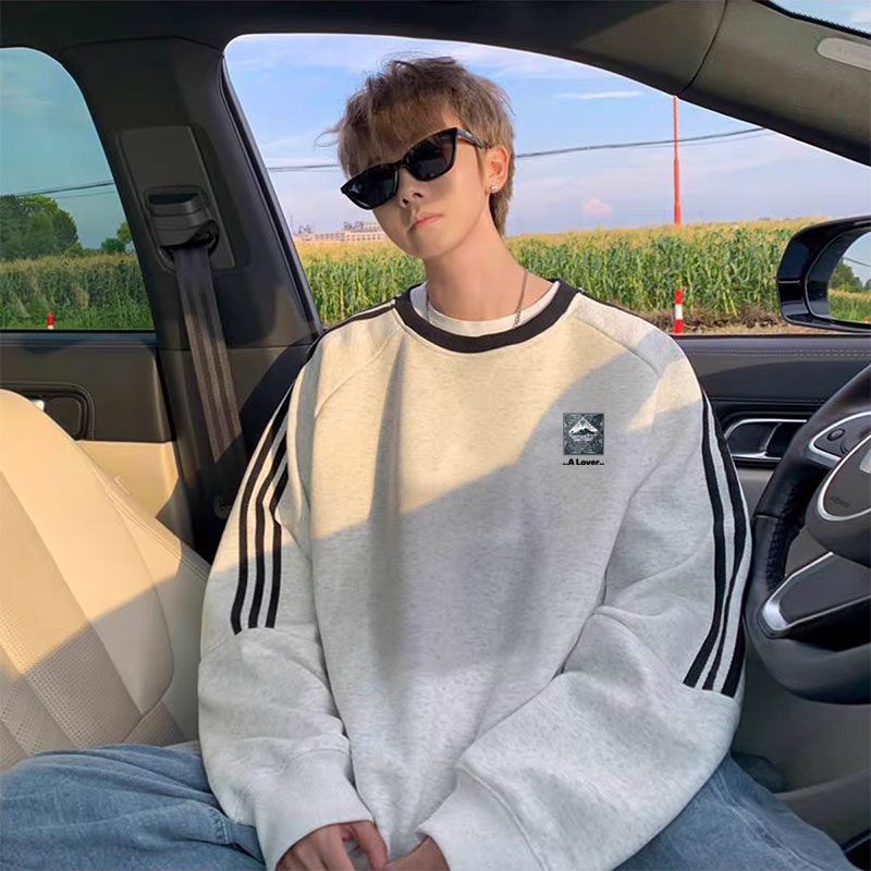 300斤大码套头款三条杠男士卫衣加绒加厚款秋冬季潮流潮圆领上衣