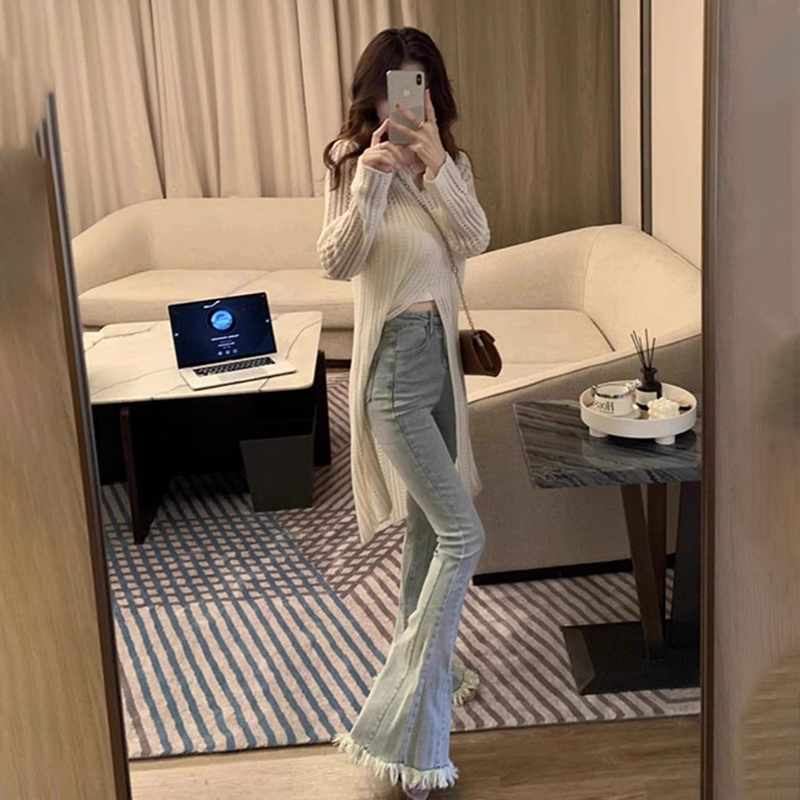 韩巧镂空针织防晒罩衫开叉连衣裙