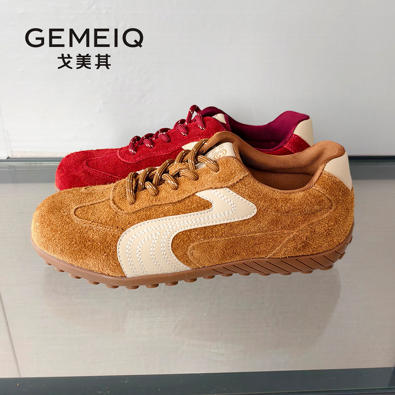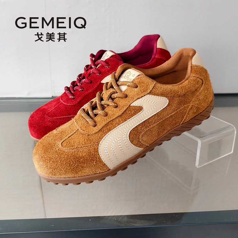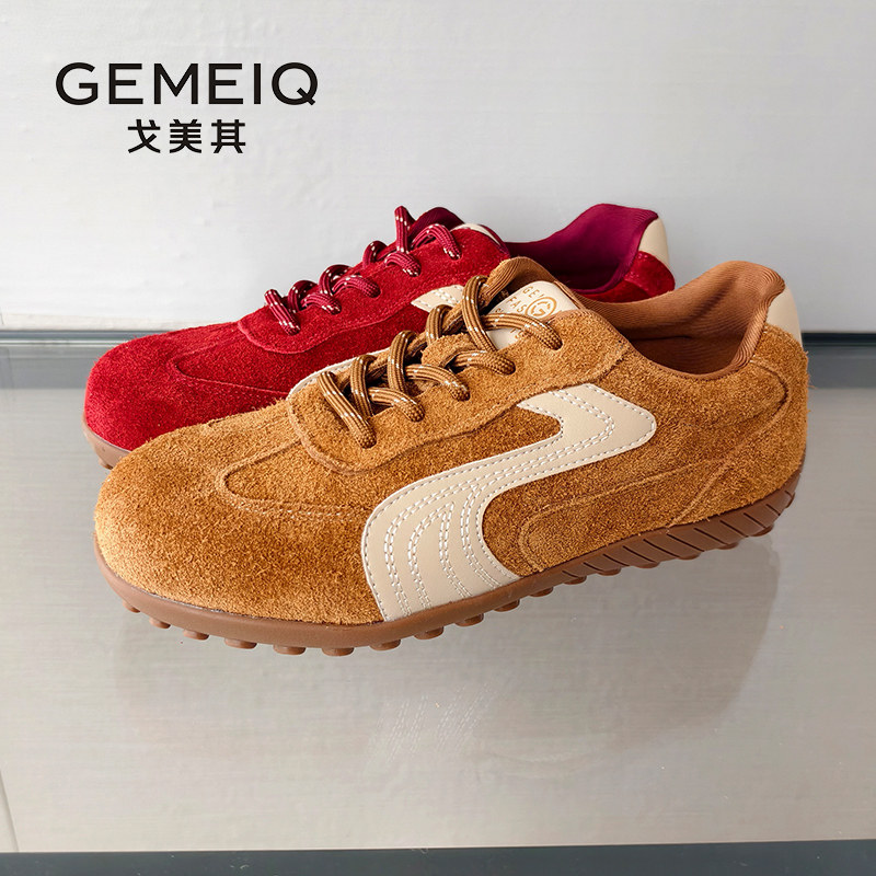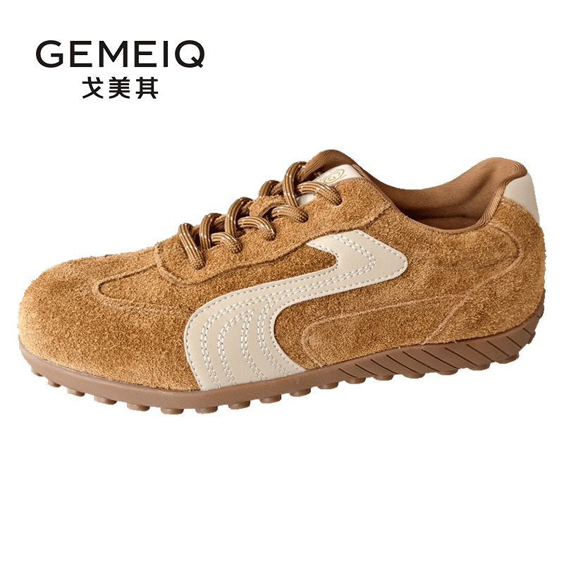 戈美其商场同款德训鞋女2025秋冬季新款赛车鞋平底内增高休闲板鞋