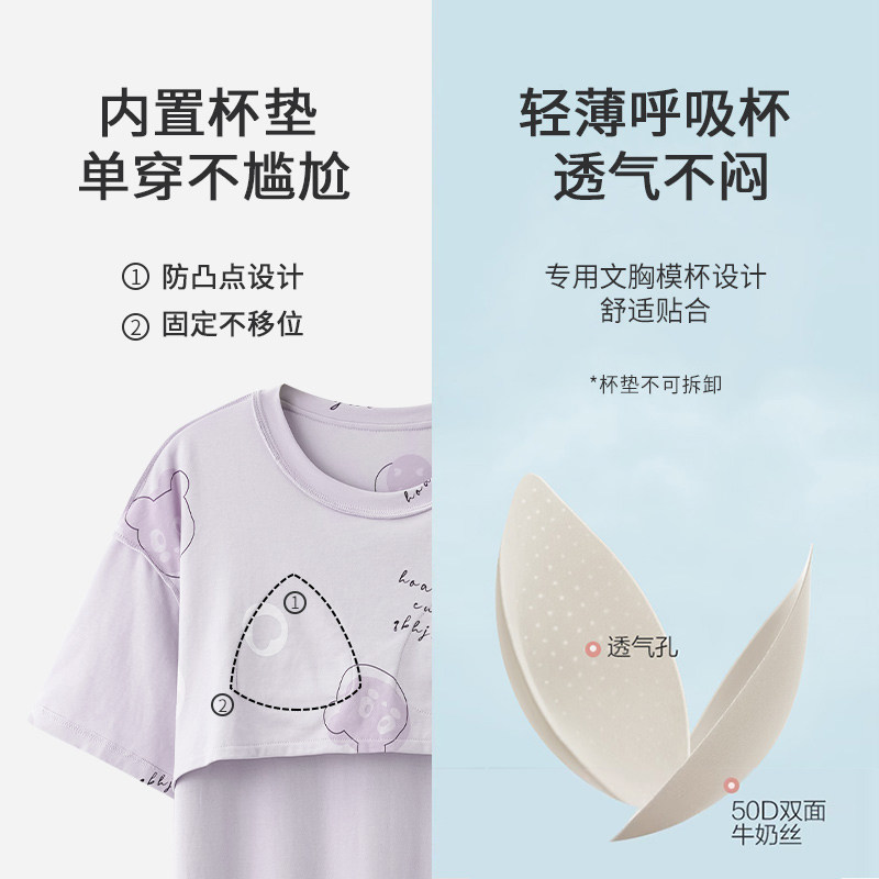 猫人睡裙女带胸垫夏季2025新款纯棉短袖大码睡衣防凸点孕妇家居服