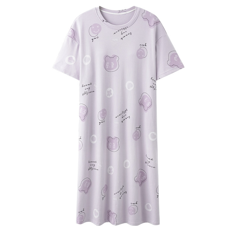 自带胸垫纯棉夏季连衣裙圆领睡衣
