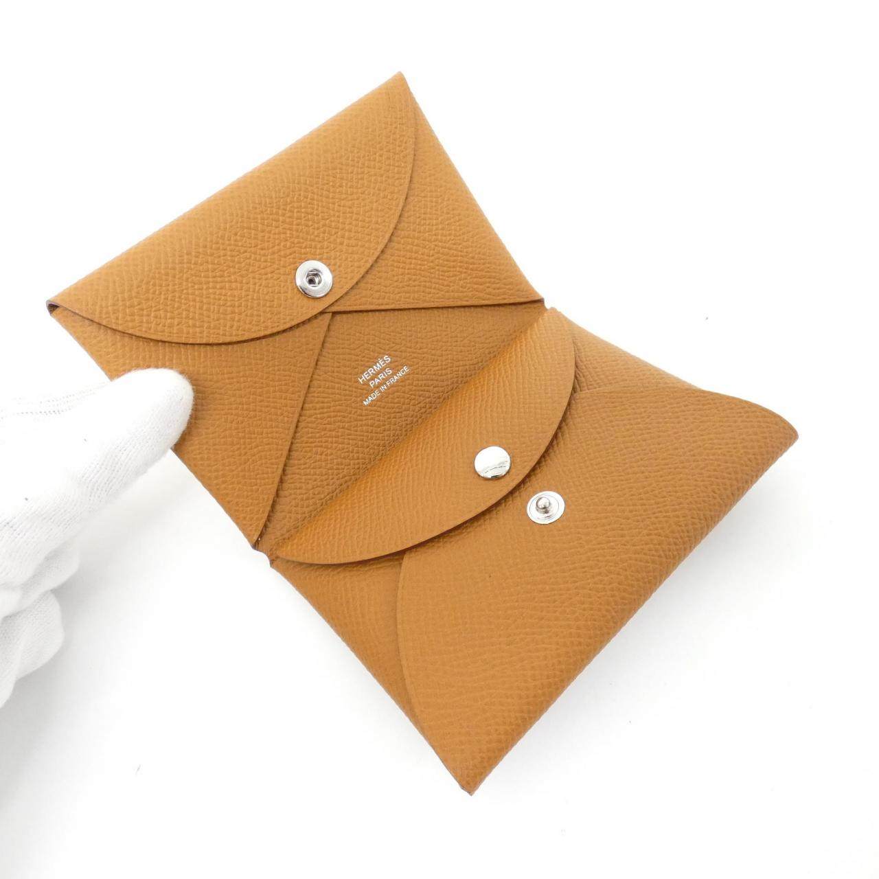 中古Hermes爱马仕A级95新Calvi Duo钱包硬币包Epson牛皮RECLO