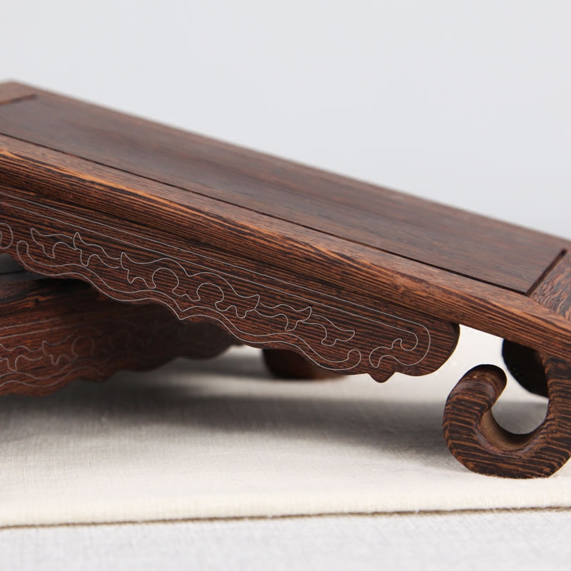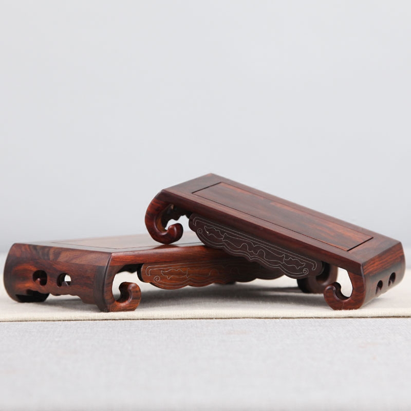 红木雕刻工艺品摆件底座实木质奇石头佛像花盆银丝书卷长方形底座