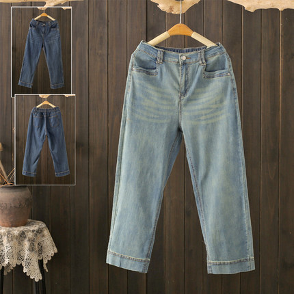 夏季大码200斤窄版阔腿牛仔裤小个子穿搭薄款高腰宽松八分直筒裤