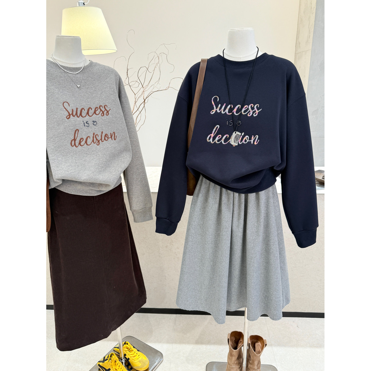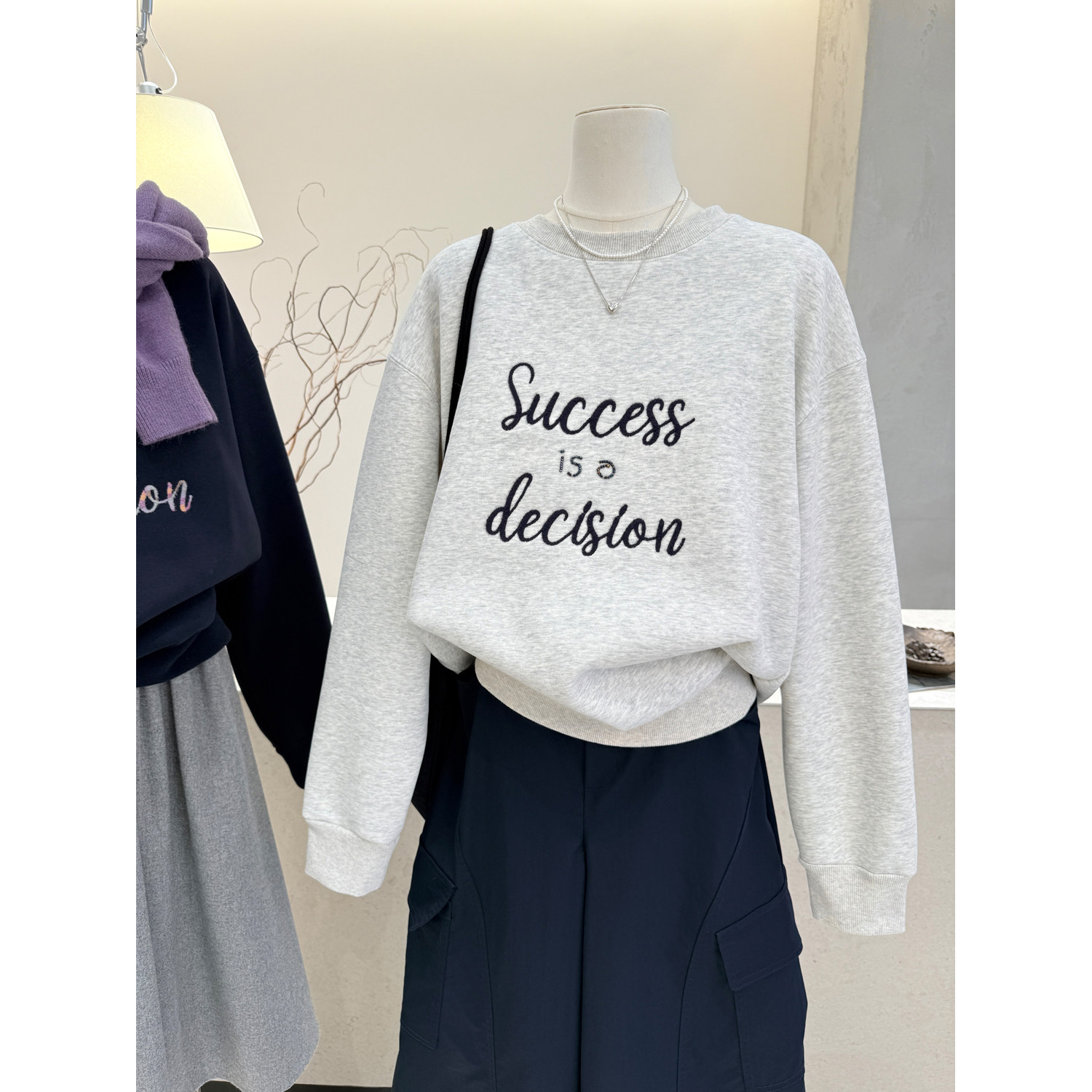 小哲 设计感刺绣加绒加厚保暖套头卫衣女秋冬新款宽松显瘦上衣