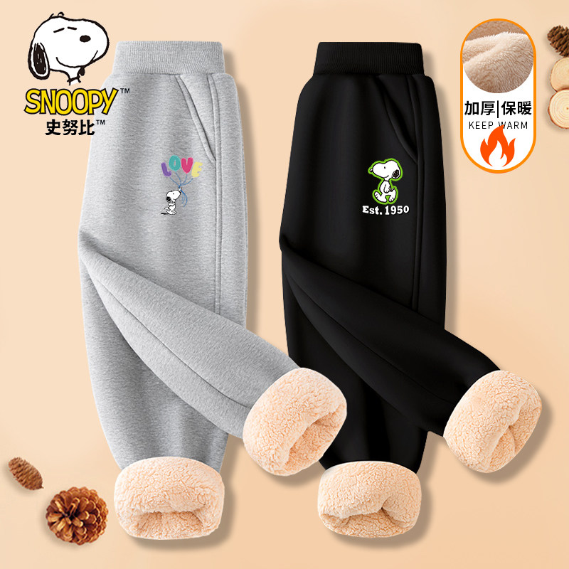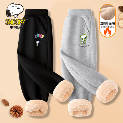 史努比女孩冬季秋冬裤子卫裤新款加绒女童运动裤儿童保暖加厚长裤