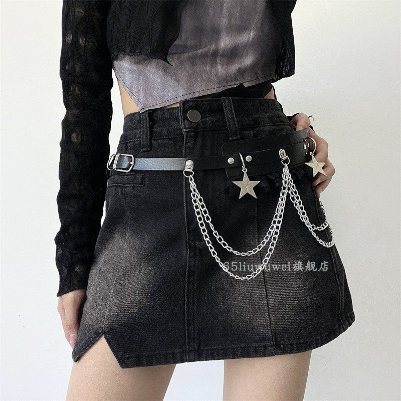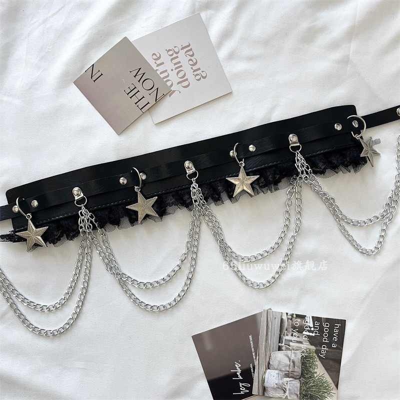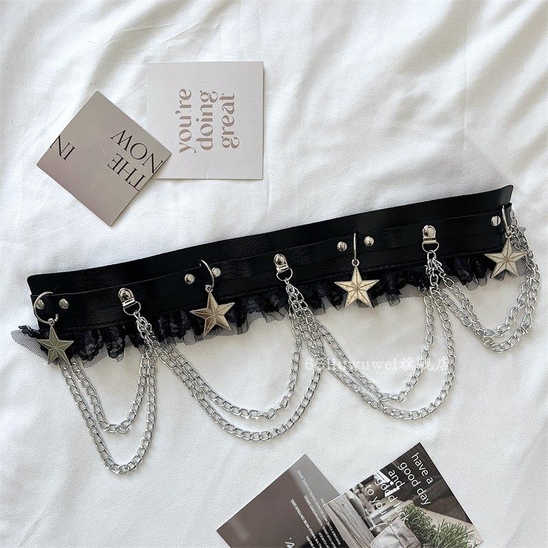 暗黑链条朋克腰带女嘻哈蕾丝拼接百搭时尚配连衣裙子外套装饰腰封