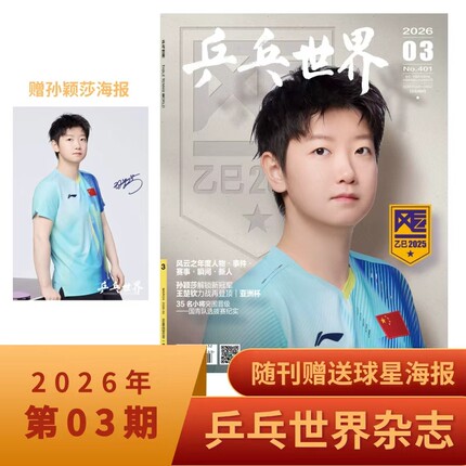 孙颖莎封面】乒乓世界杂志2026年3/2/1月/全/半年订阅 孙颖莎/王楚钦/王曼昱/马龙/樊振东 运动乒乓球教学技巧知识