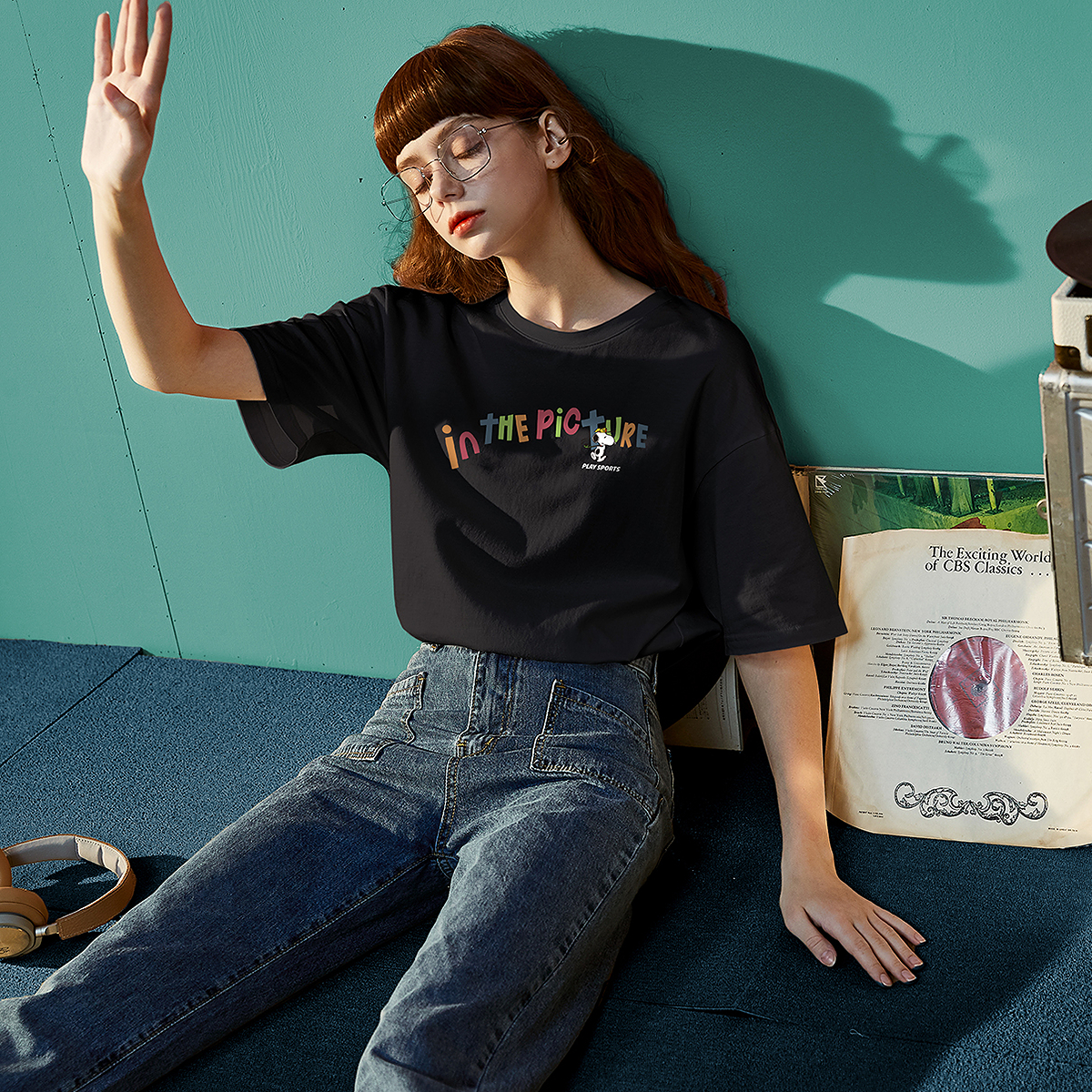 【史努比联名】唐狮2025夏季新款刺绣短袖T恤女白色圆领纯棉休闲
