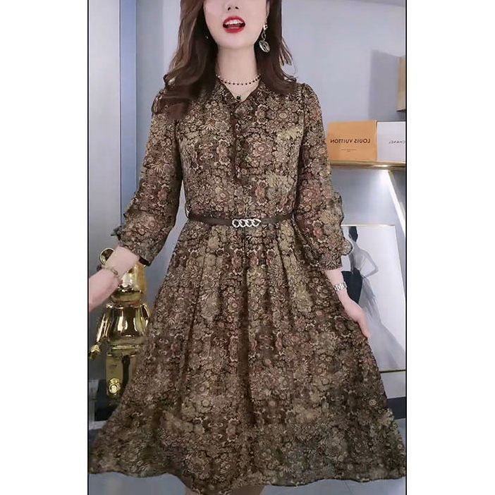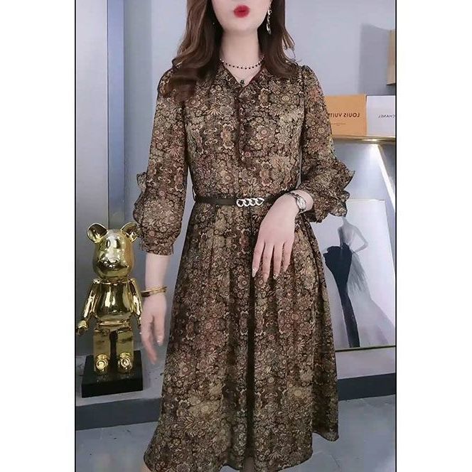 高端气质连衣裙女2025春季新款时尚荷叶边显瘦遮肚子大码中长款裙