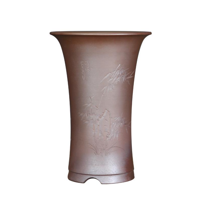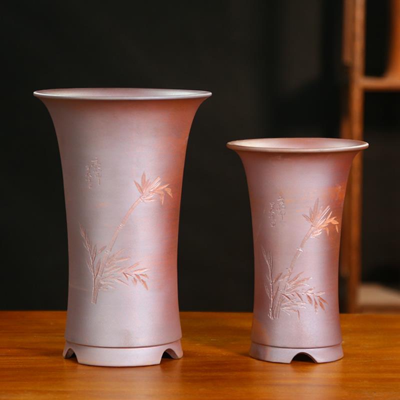 柴烧紫砂花盆特大号束腰古典刻绘兰花盆透气寒兰蕙兰春兰阳台花盆