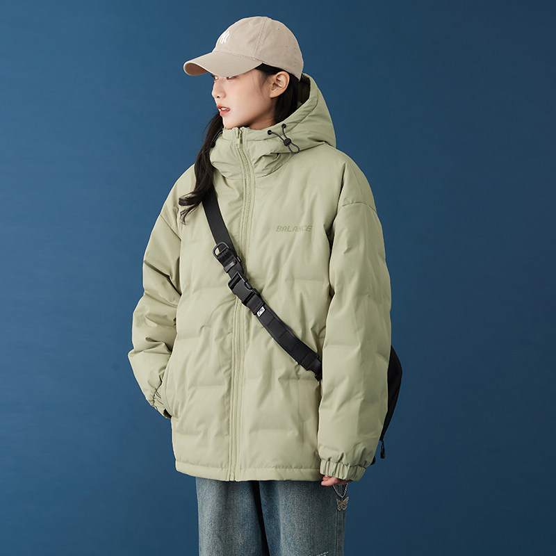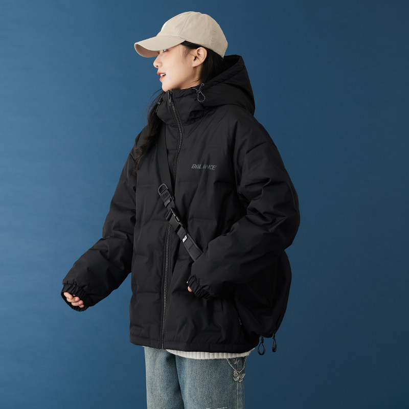 连帽宽松轻薄羽绒服女2025冬季新款不规则压印休闲短款白鸭绒外套