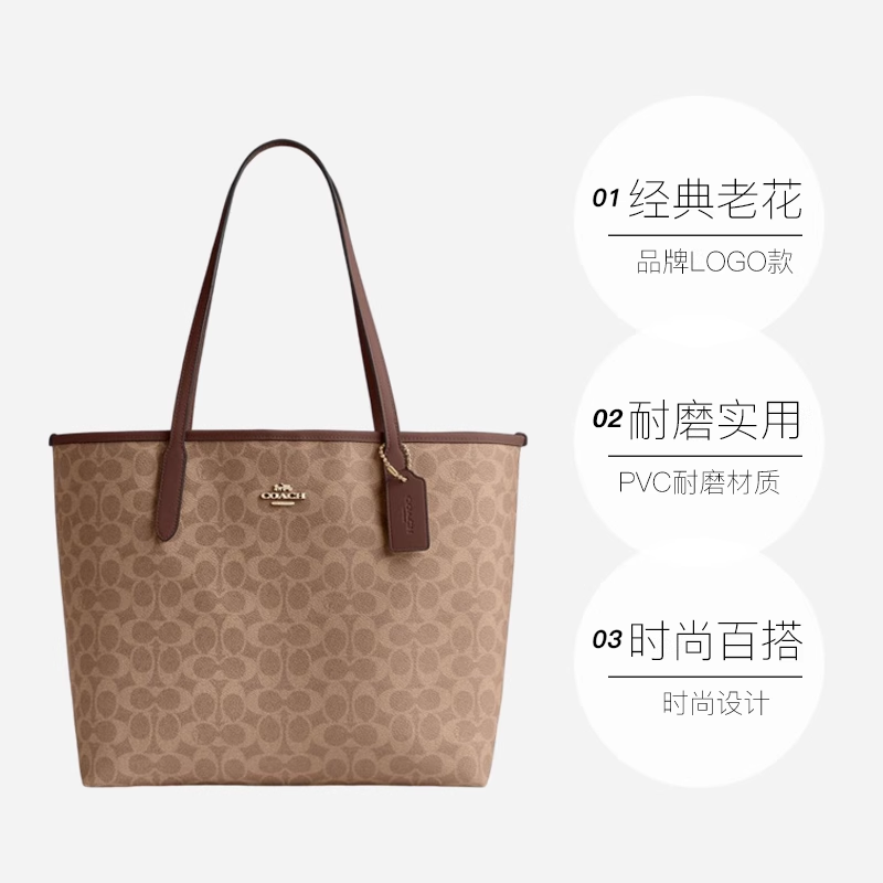 【自营】【惊喜箱包节】COACH/蔻驰经典老花女士大容量手提托特包