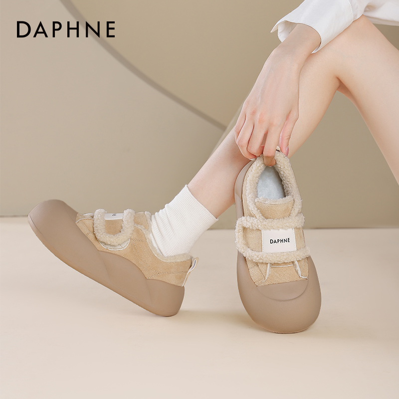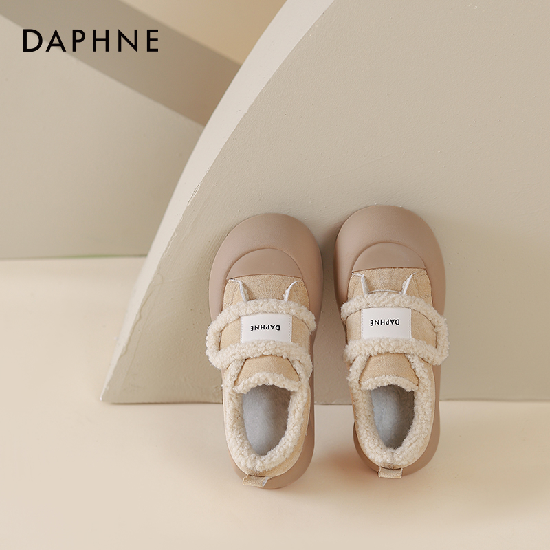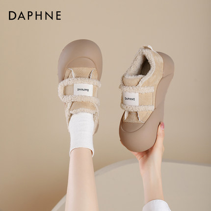 达芙妮保暖棉鞋女2024冬季新款加绒小白鞋厚底雪地靴毛毛面包鞋女