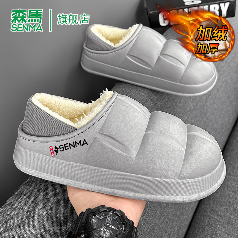 森马棉拖鞋男款2025年冬季加绒加厚居家保暖室内防滑防水包跟棉鞋