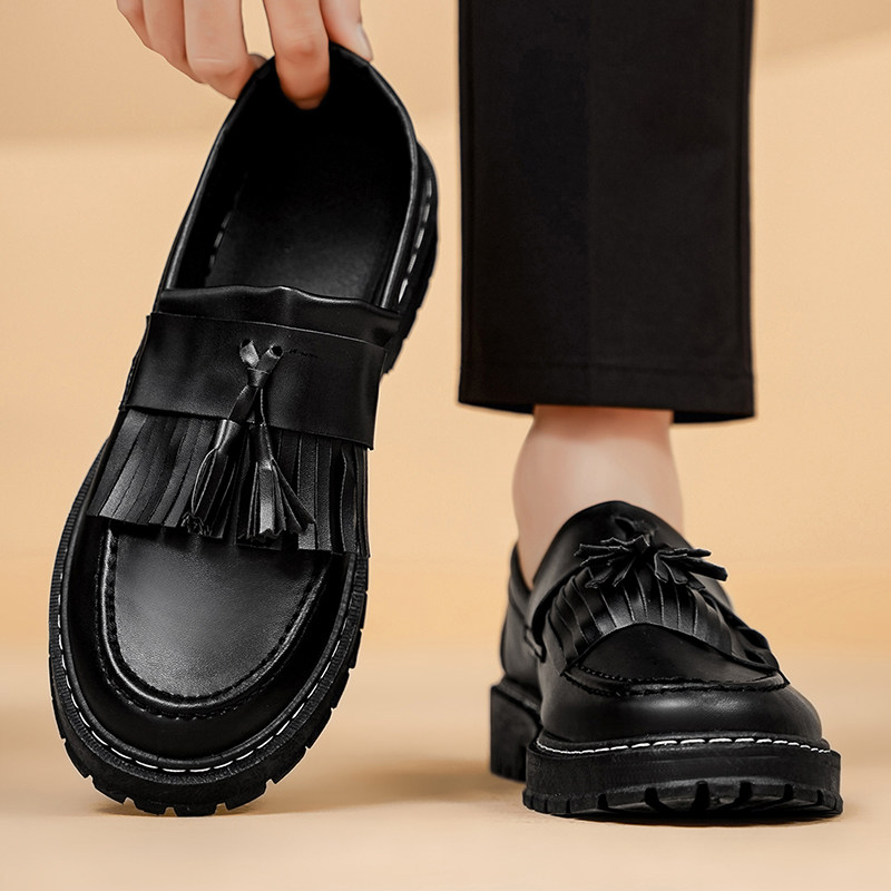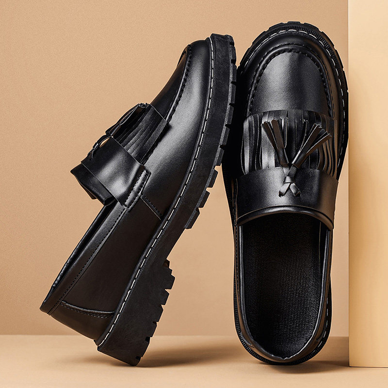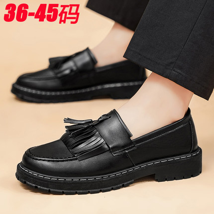 春季黑色商务正装英伦风休闲皮鞋38一脚蹬开车豆豆鞋37小码男鞋36