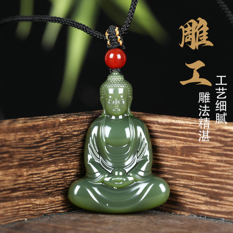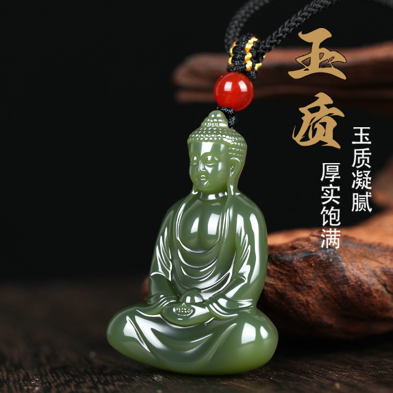 唐今玉和田玉湖水绿大日如来吊坠男女款立体大日如来生肖守护神