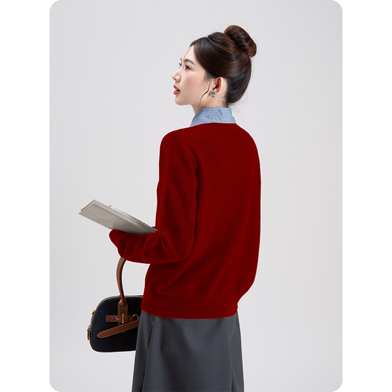 新年红韩版学院风假两件拼接针织开衫女秋装单排扣刺绣毛衣短外套