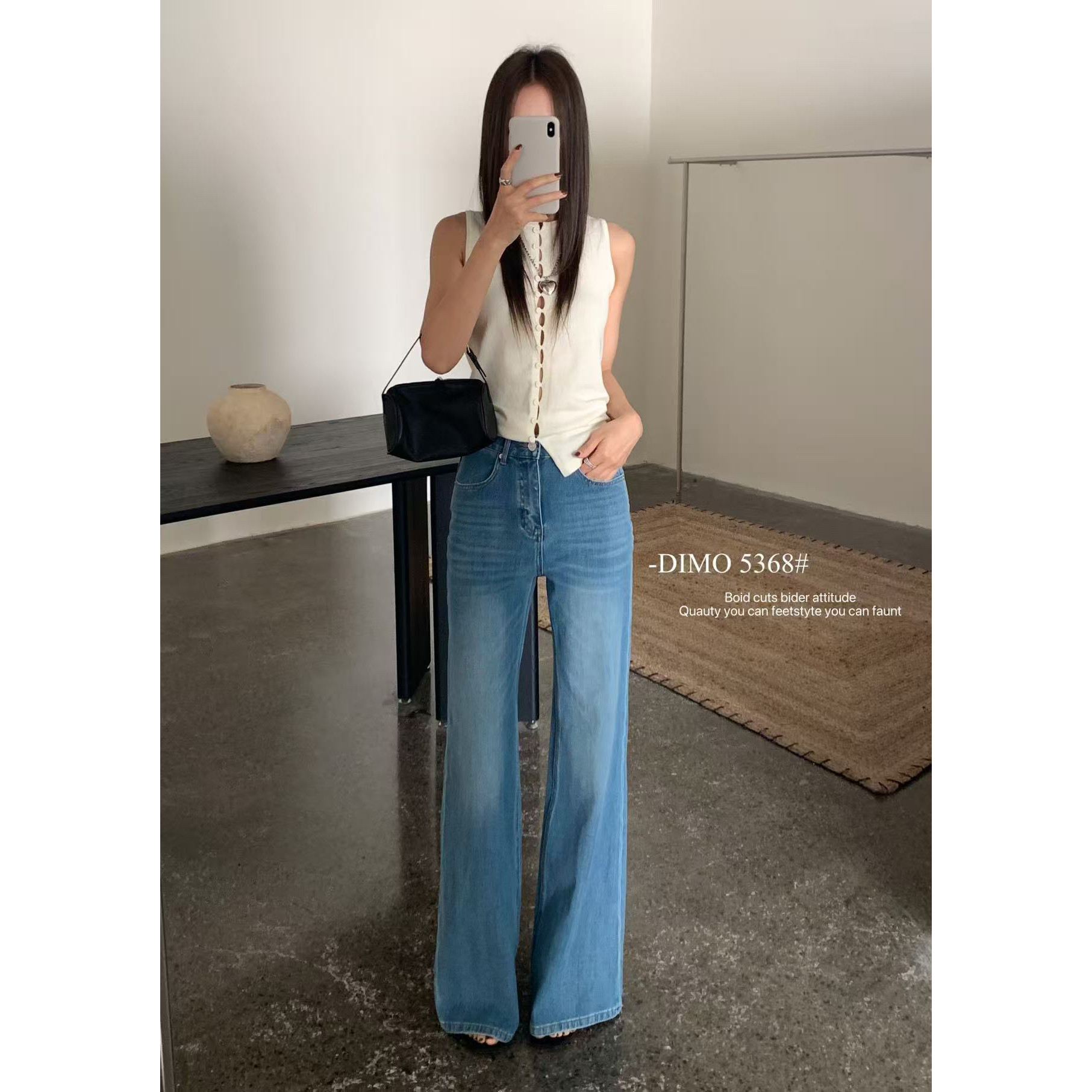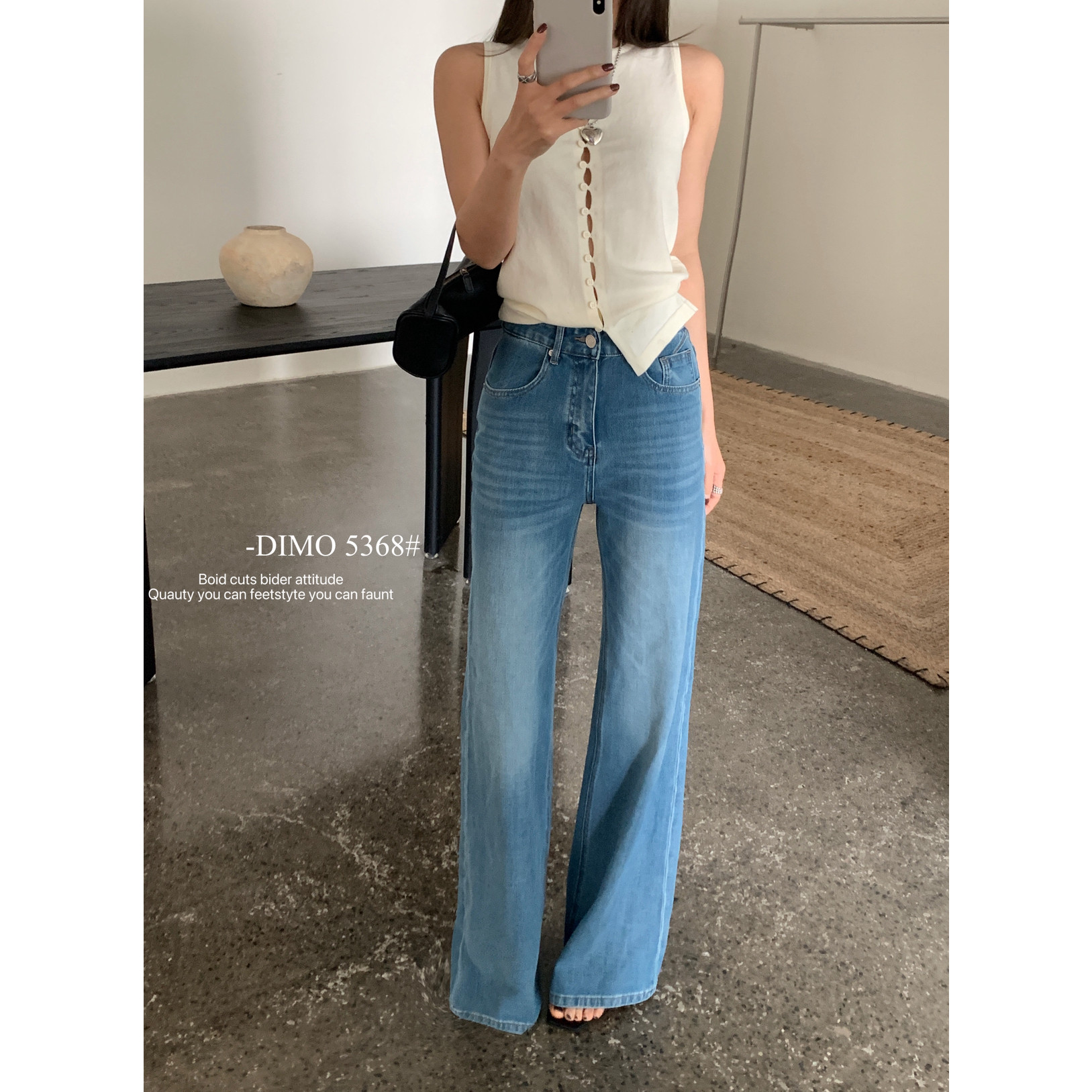 DIMO-弹口袋刺绣柔软有型久穿不垮喇叭裤牛仔裤(慵懒时髦)5368兰