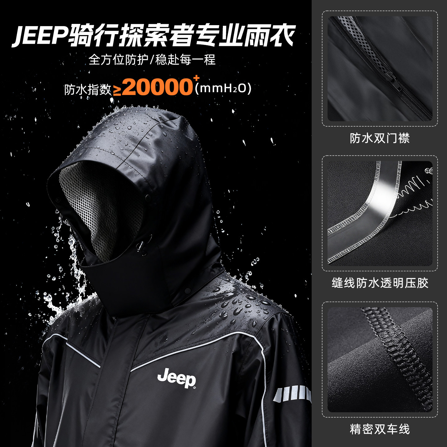 JEEP吉普成人雨衣男2026新款摩托车骑手专用全身防暴雨分体式套装