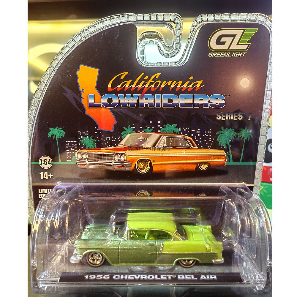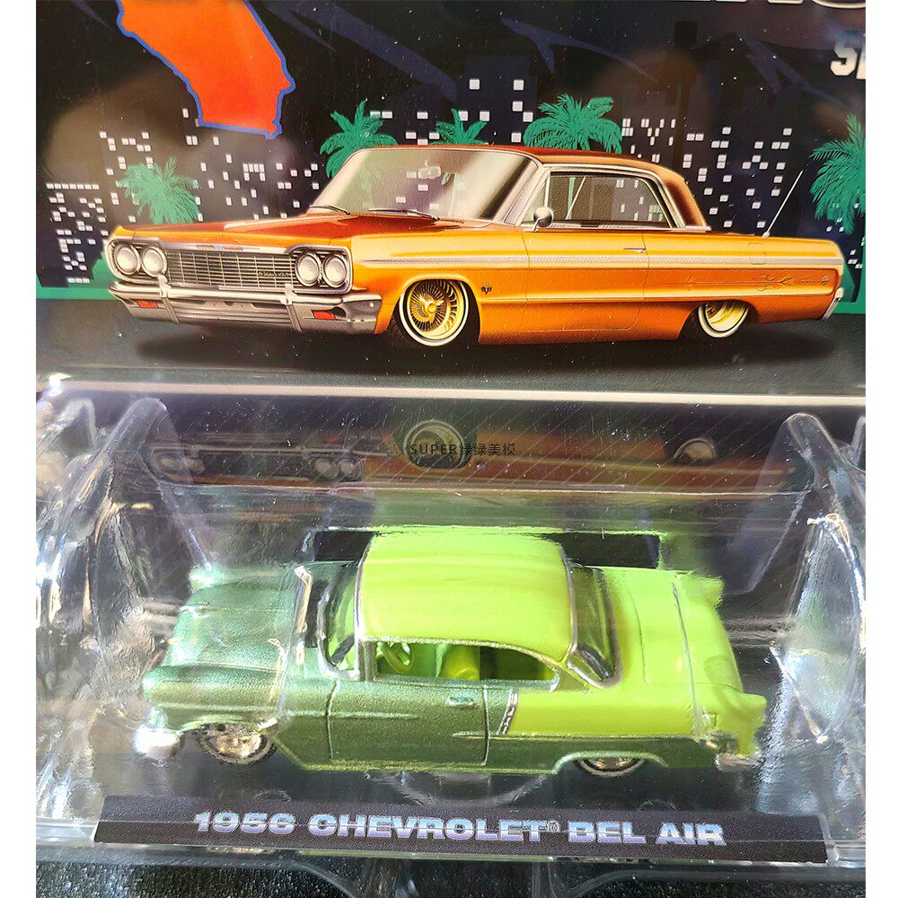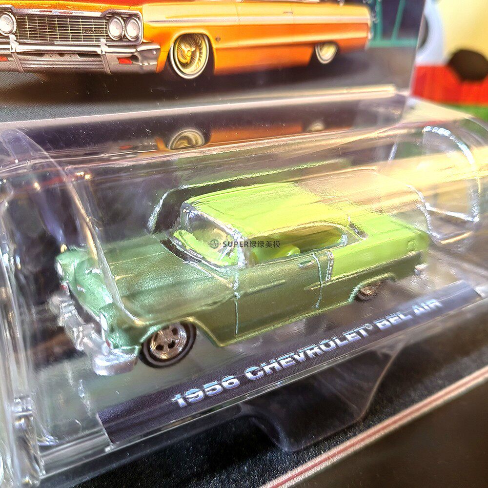 绿光 1:64 1956 雪佛兰蓓丽Lowrider 藏红花黄与月桂绿双拼63080A
