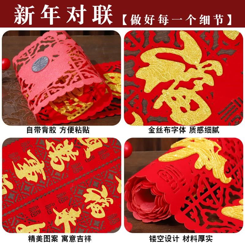 2.2米农村自建房大门对联2025年新款蛇年绒布春节带背胶1.6米春联