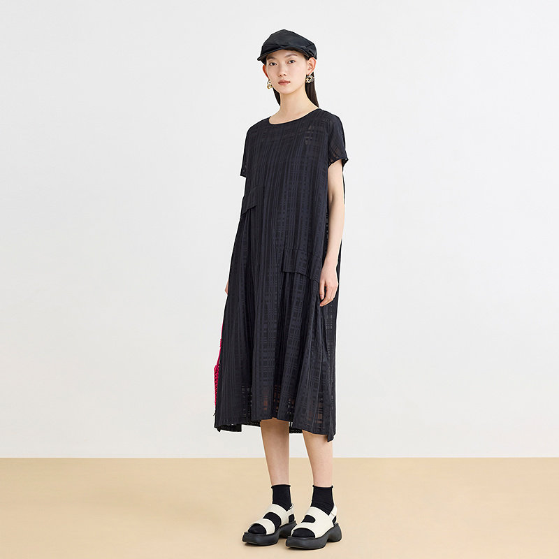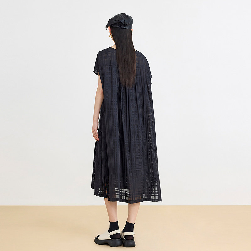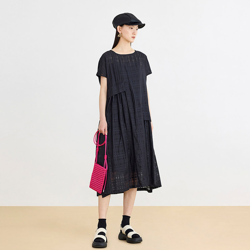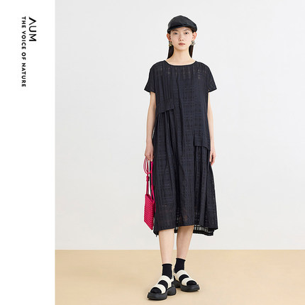 AUM噢姆夏季文艺格纹连衣裙女设计感裙子