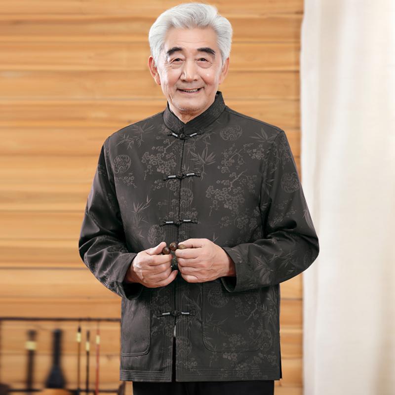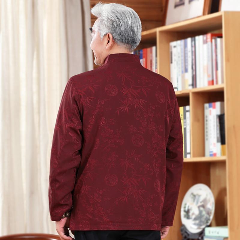 红色中国风唐装套装爸爸外套秋冬季中老年人生日婚宴男装爷爷棉袄