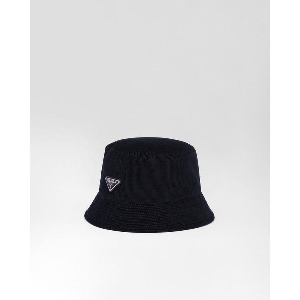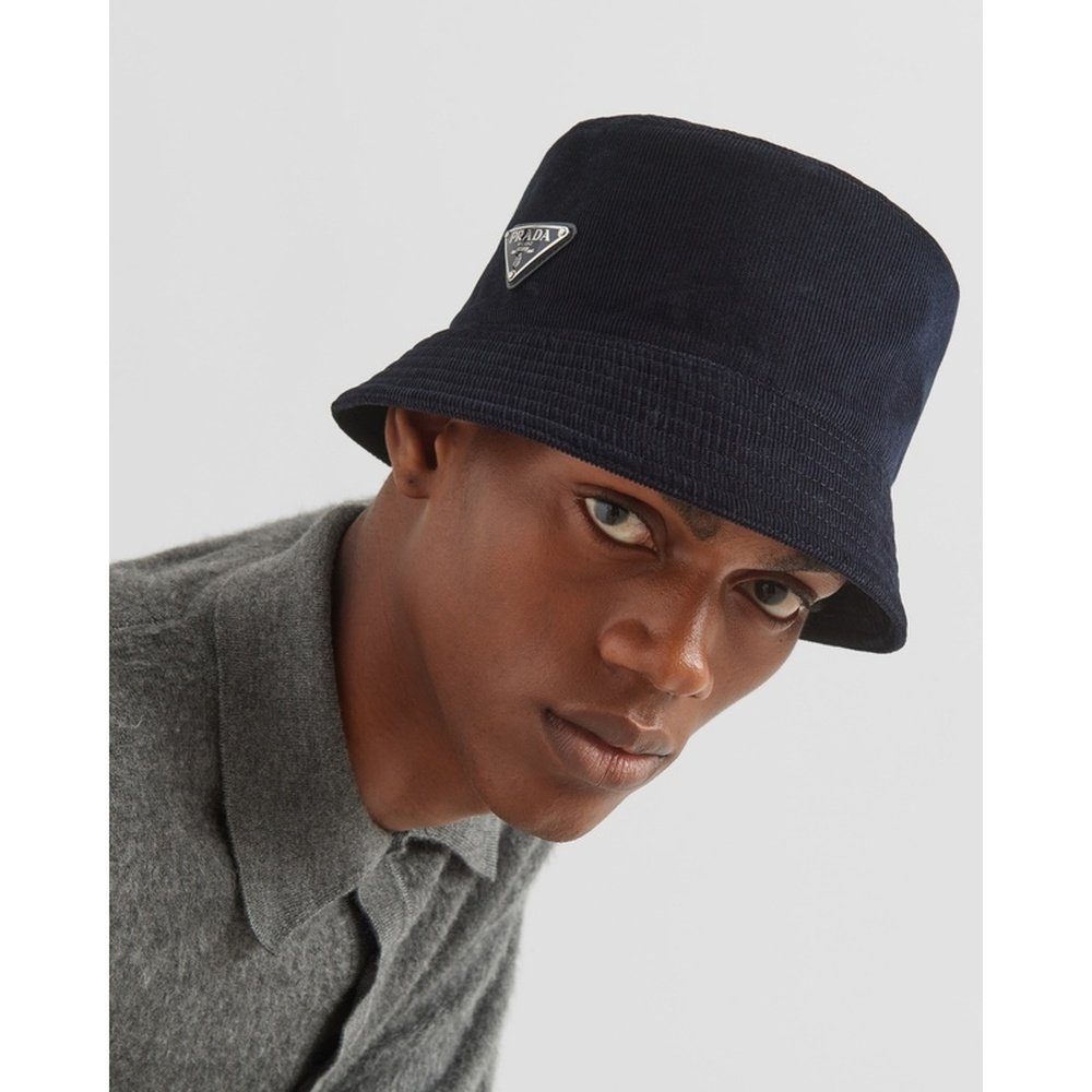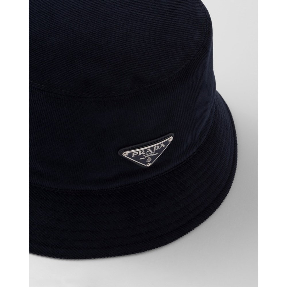 自营欧洲直邮Prada普拉达 男士蓝色棉金属三角标识圆顶帽子礼帽