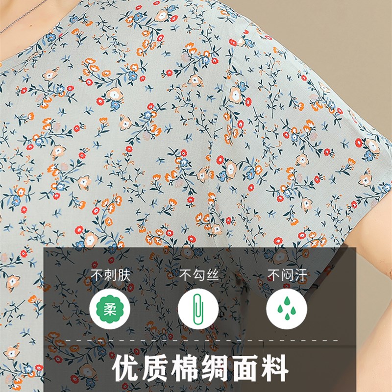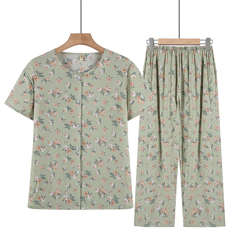 中老年女装夏款妈妈短袖套装棉绸两件套老人夏天衣服家居服老太太