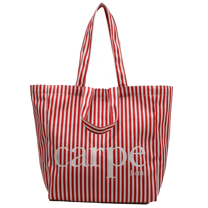大容量条纹托特包单肩手提购物袋