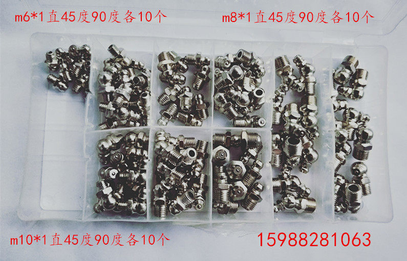 黄油嘴盒装修理包黄油枪配件直弯黄油嘴黄油咀镀镍油嘴M6M810套装