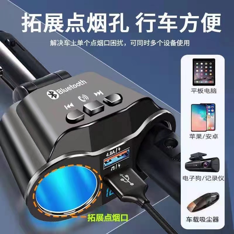 车载充电器一拖三快充头超级车充手机蓝牙播放器