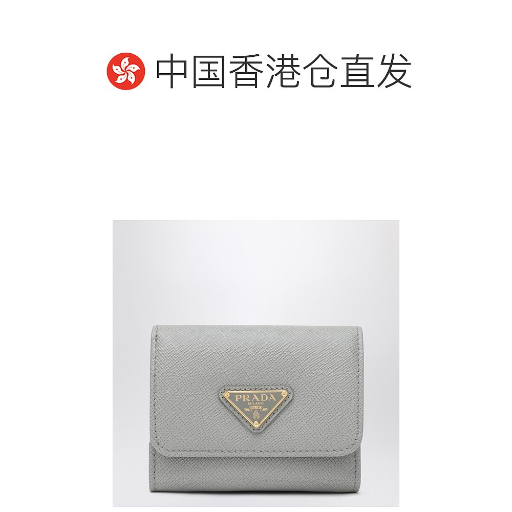 1h可退 香港直邮Prada 普拉达 女士 浅灰色小号小牛皮钱包 1MH043
