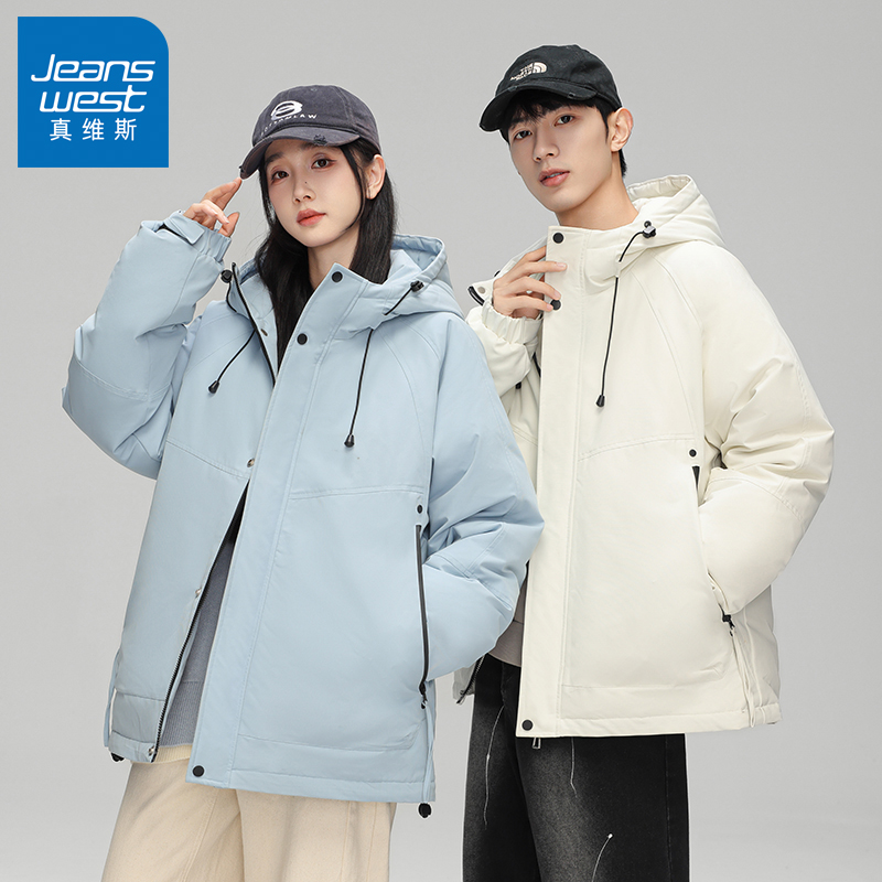N5真维斯羽绒服男款2025新款冬季户外连帽保暖情侣装鸭绒冬装外套