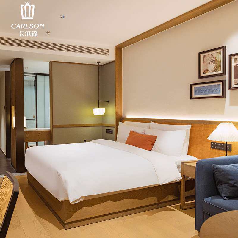 新中式原木风酒店民宿宾馆公寓标间客房成套家具双人床厢固装家具