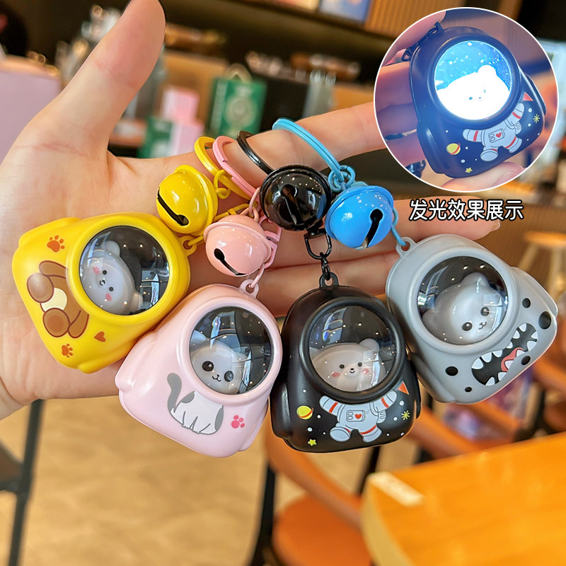 卡通发光可爱钥匙扣背包小猫小熊挂件包包挂饰小夜灯情侣氛围礼品